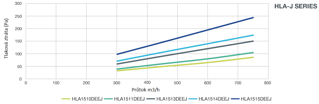 - Konečná doporučená tlaková ztráta: 500 Pa