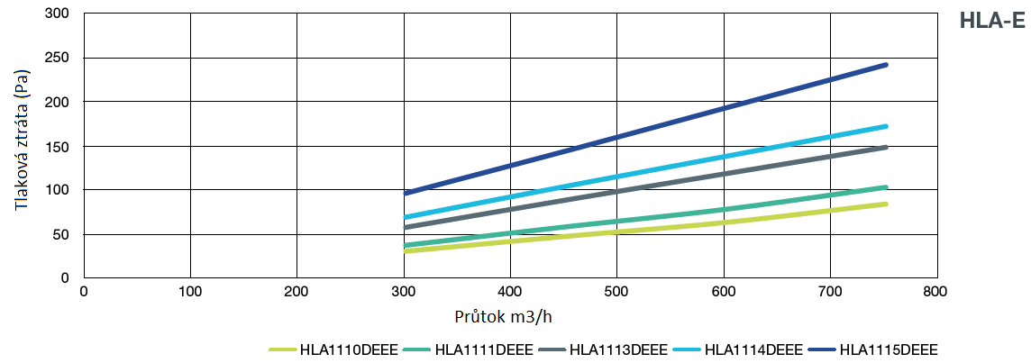 - Konečná doporučená tlaková ztráta: 500 Pa