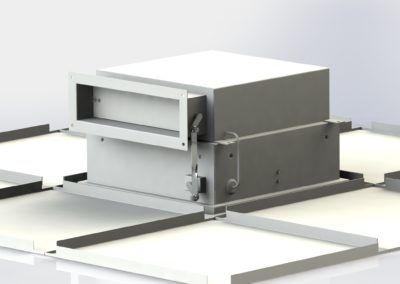 Provedení s čelní deskou z děrovaného plechu (otevřená plocha 40%), filtračním rounem na záchyt prachových částic a upevněním čelní desky pomocí kolíků, které umožnují jednoduché vysazení nebo nasazení děrovaného plechu a tím uvolnění nebo utěsnění dalších filtrů.