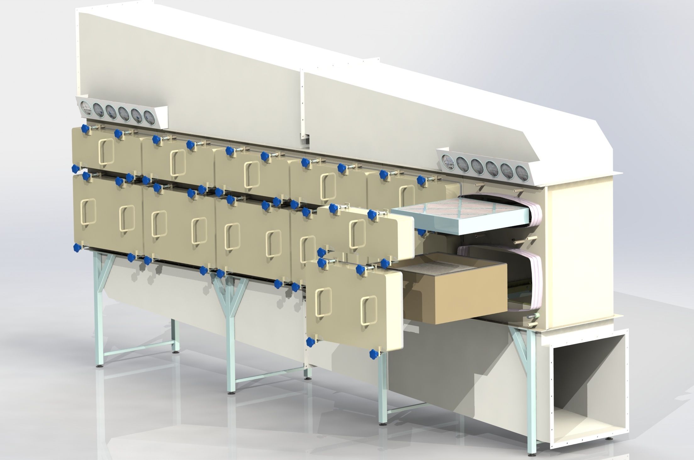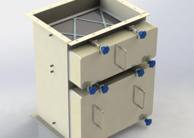 Regenerovatelný vláknový filtr – jemná nerezová síťovina je napnutá na nerezovém svařeném rámu. Čistění povrchu síťoviny (odstraňování zachyceného prachu) je možné stíráním, profukováním tlakovým vzduchem nebo mokrou cestou (praní, proplachování).